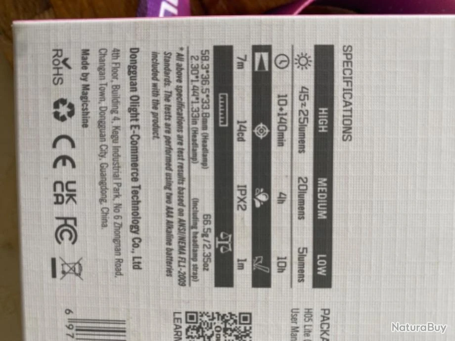 Lampe Frontale Rayfall HP3A-S – 168 Lumens Capteur De Mouvements