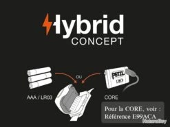 – Alimentation : 3 piles AAA/LR03 (fournies) ou batterie rechargeable CORE (réf. E99ACA).