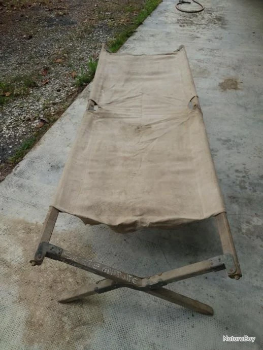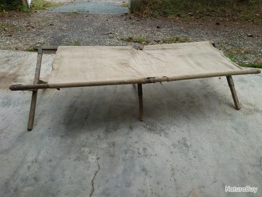 Lit de camp militaire bon état. D’occasion et fonctionnel, vendu en l’état