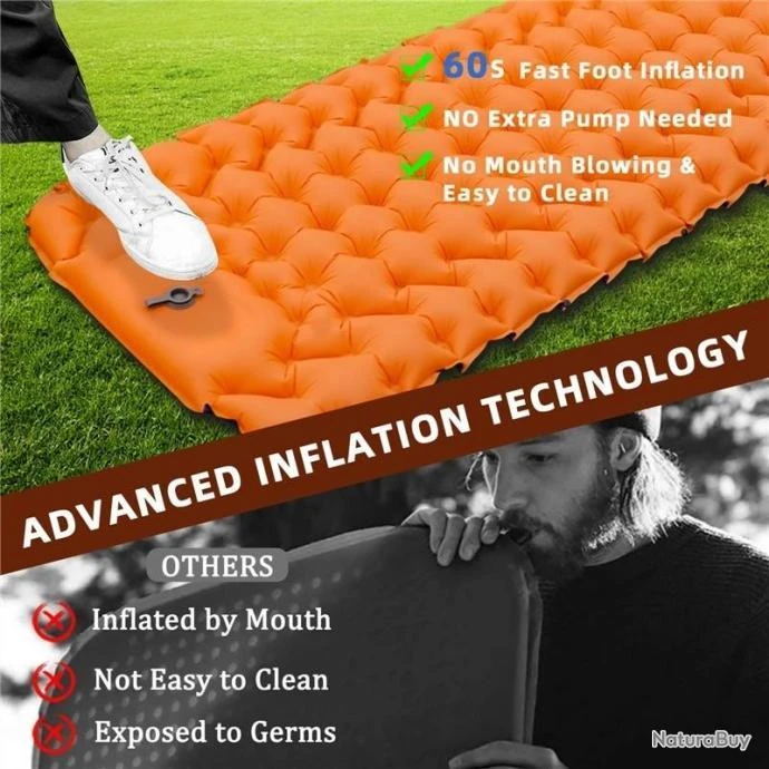 Caractéristiques du matelas: imperméable, pliable, pompe de gonflage intégrée