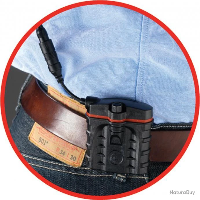 * Compartiment à piles : à l?arrière ou à la ceinture avec l?extension de cordon fournie