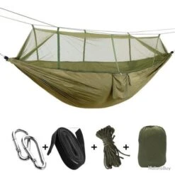 Hamac Portable 2 Personnes Haute Résistance avec Moustiquaire Lit pour Camping et Chasse Vert Neuf