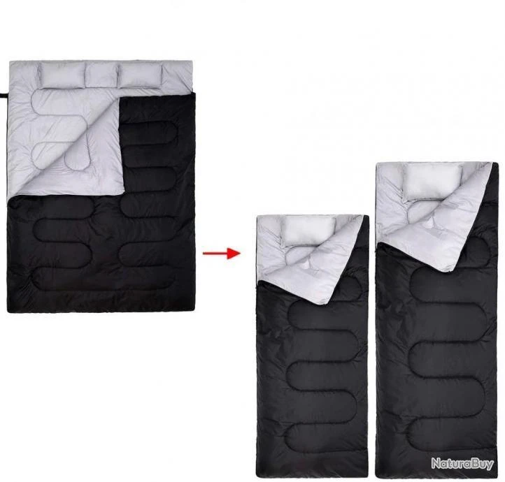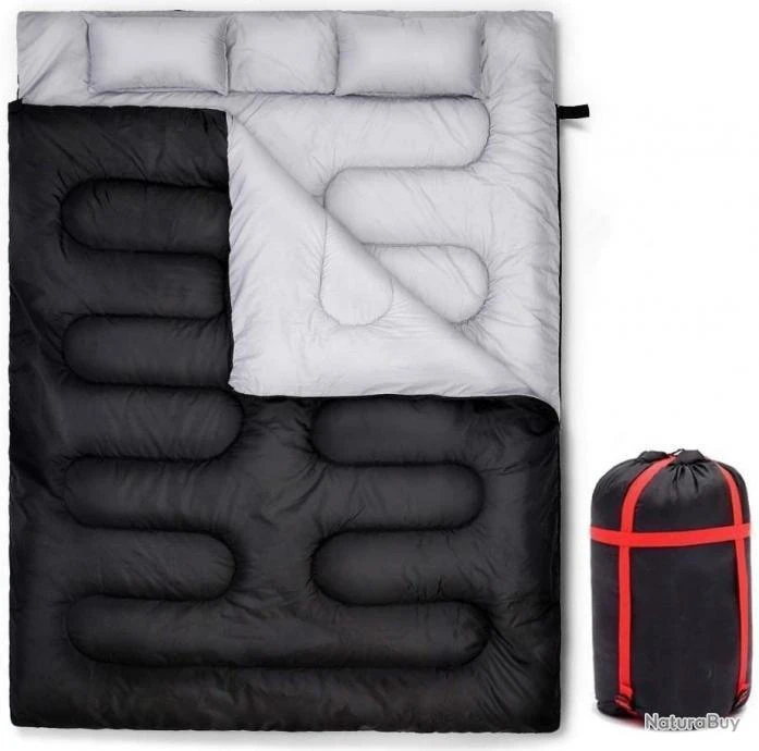 IpermĂ©able, dĂ©tachable et chaud, ce grand sac de couchage pour 2 personnes est idĂ©al pour vos activitĂ©s outdoor, en camping, bivouac en saison d’hiver !