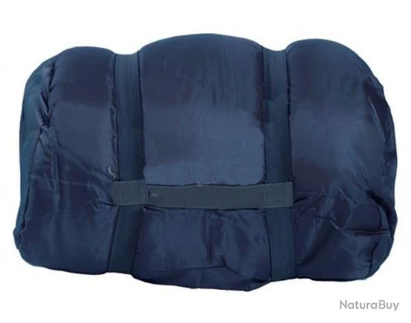 Particularités : Sac de couchage épais, confortable, entièrement rembourré et chaud pouvant être utilisé en toutes saisons (jusqu’à 0 °C). Fermeture par zip à curseur double (peut être ouverte par l’extérieur et par l’intérieur) avec protection anti pincement scratché. Le sac s’ouvre sur 2 cotés (coté droit et base) permettant ainsi de l’ouvrir entièrement pour l’aérer ou servir comme couverture. Le haut du sac est terminé par un lacet de serrage. La tête est également rembourrée pour un confort maximal et sert de rabat pour maintenir le sac bien fermé et roulé sur lui-même. Facile à ranger, il suffit de le plier en 3, de le rouler bien serré dans le rabat et de le maintenir avec les 2 élastiques prévus à cet effet. Votre sac de couchage est plié, rangé et peut être emmené partout avec vous grâce à sa poignée de transport.
