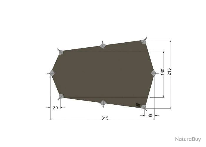 Tarp ultra-léger et très haute résistance à la déchirure pour une personne, fabriqué en polyamide avec enduction silicone.