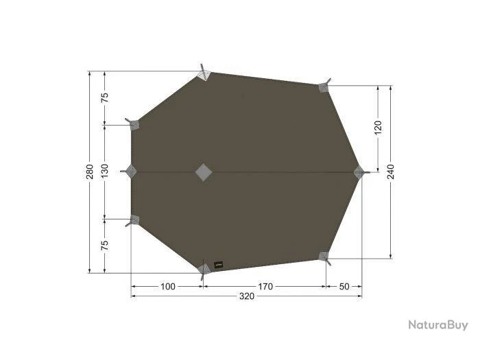 Tarp ultra-léger et très haute résistance à la déchirure pour une personne, fabriqué en polyamide avec enduction silicone.